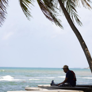 这是5月21日在多米尼加首都圣多明各拍摄的海边一景。