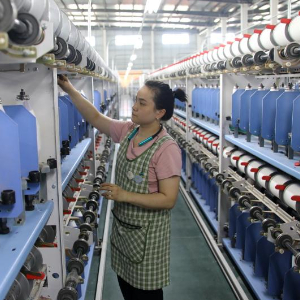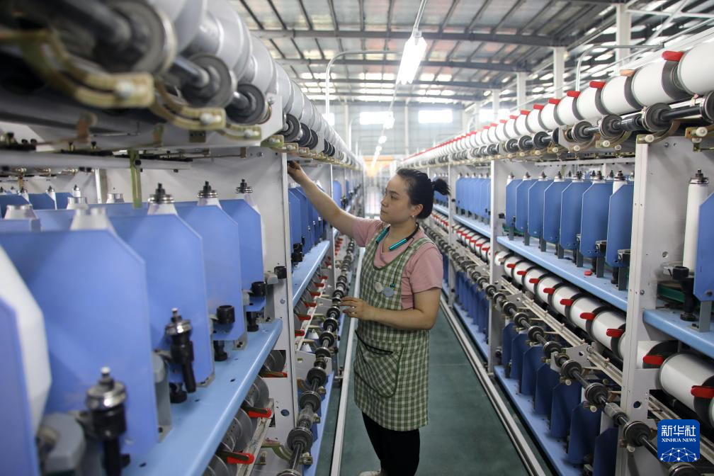 5月22日,村民在定远县张桥镇轻纺产业园内的纺织车间作业。