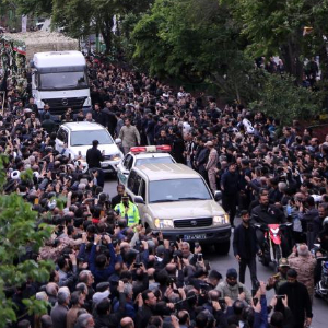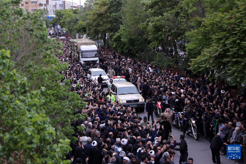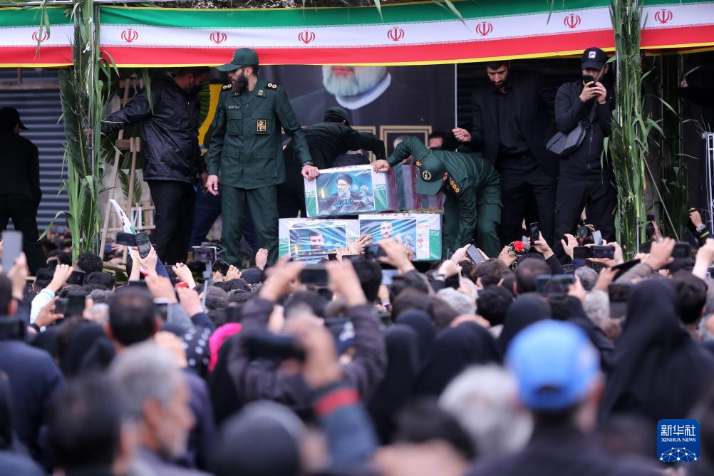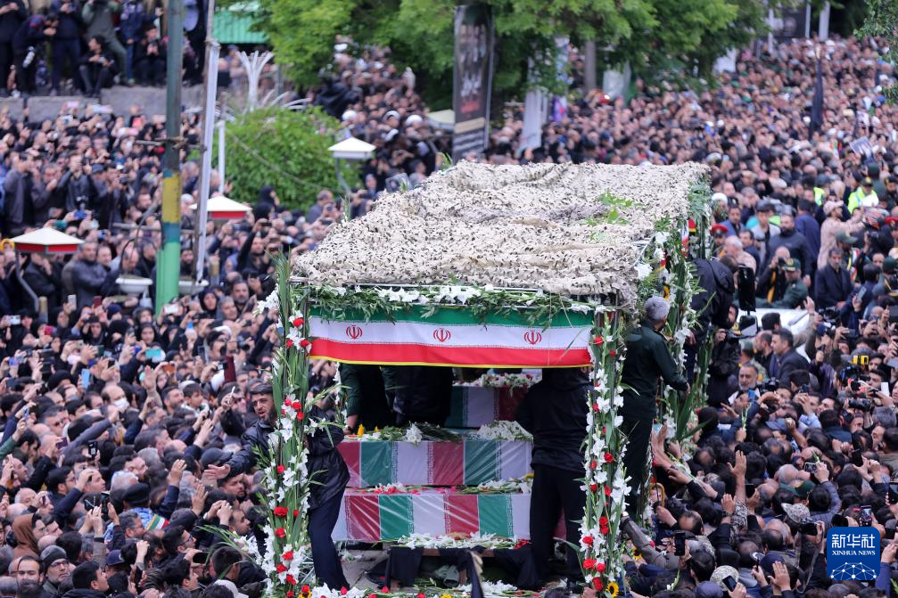 伊朗21日在东阿塞拜疆省省会大不里士为总统莱希及其随行人员举行遗体告别仪式。