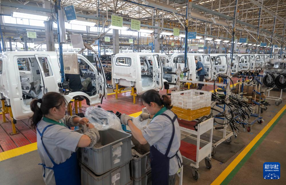 5月23日,工人在日照市五莲县五征集团总装车间进行汽车内饰安装。
