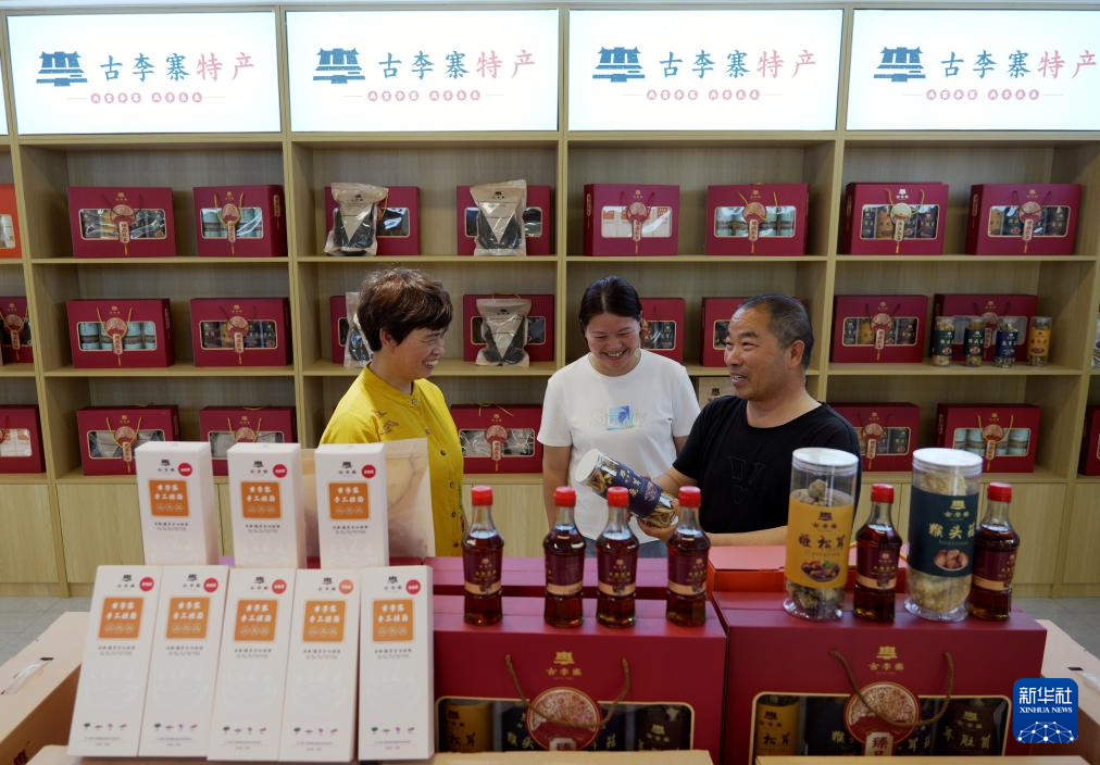 5月21日,游客在李寨村游客服务中心挑选特色农产品。