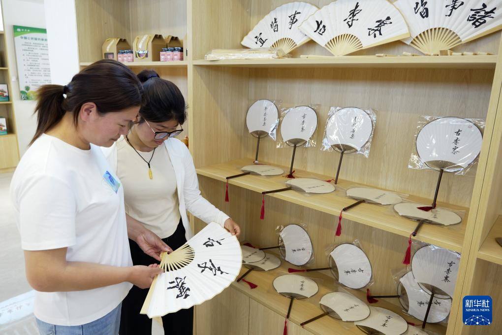 5月21日,游客在李寨村游客服务中心挑选文创产品。