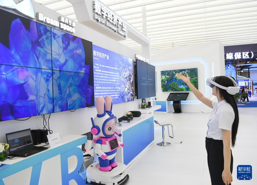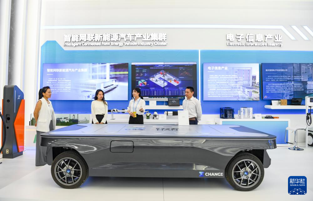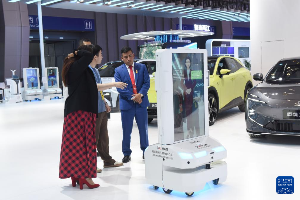 5月23日,工作人员在西洽会上给观众介绍讲解机器人。