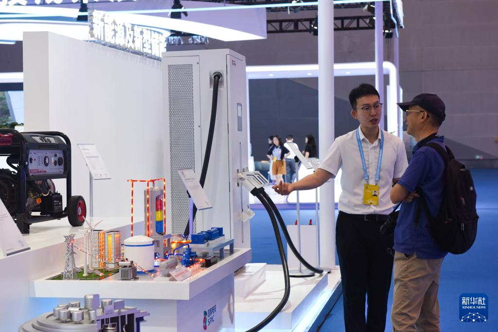5月23日,工作人员在西洽会上给观众介绍相变堆积床储热换热一体化装置。