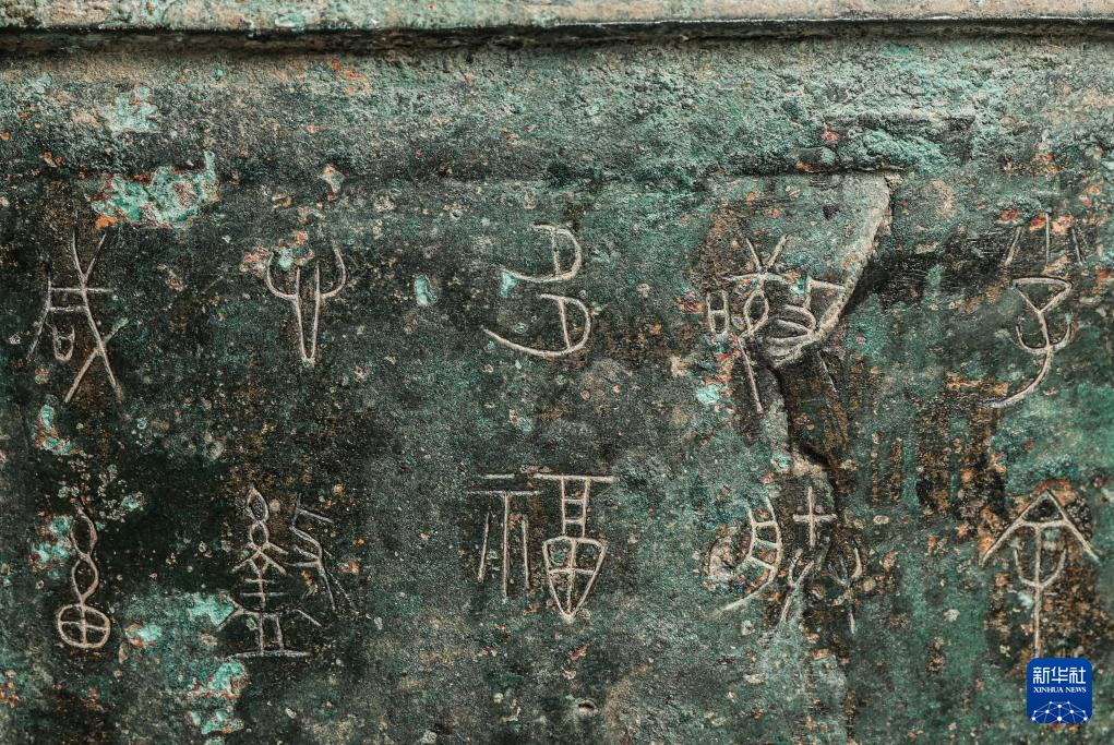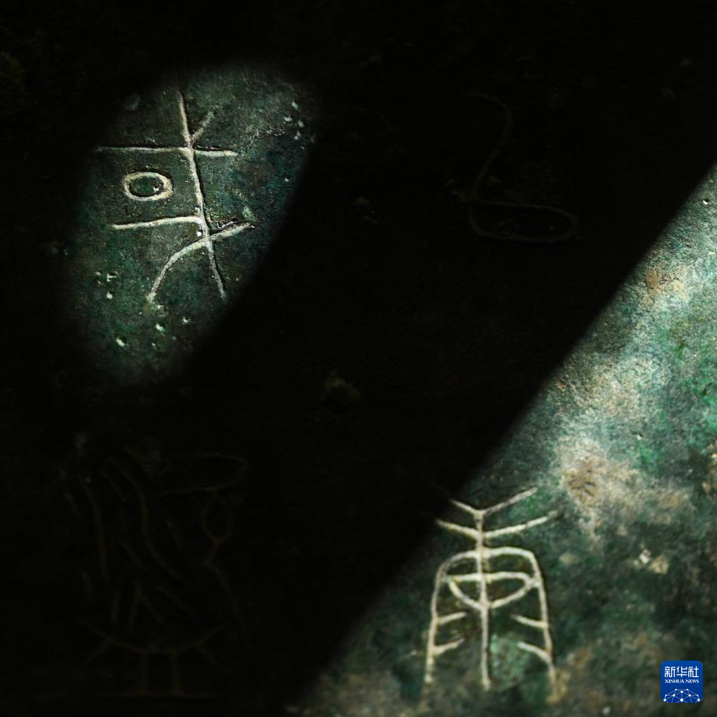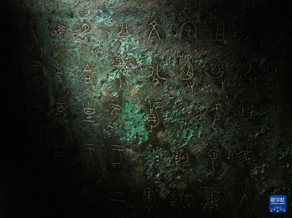 秦公镈(一号镈)铭文“或(国)”字(左上)(2024年1月23日摄)。 新华社记者 李贺 摄pagebreak
