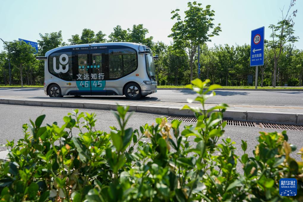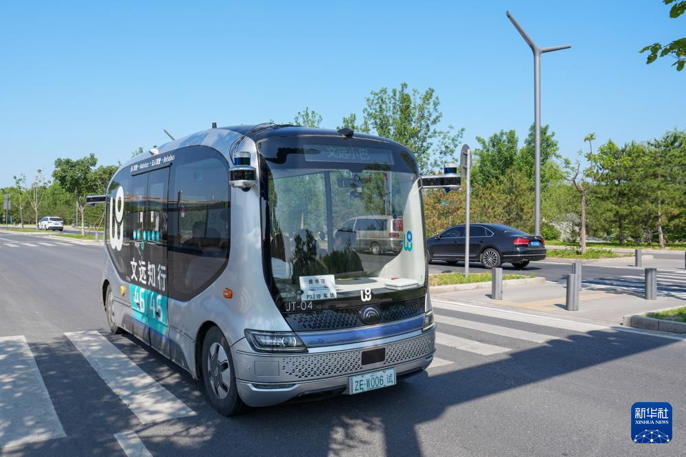 2024年5月21日,在北京城市副中心,一辆无人驾驶小巴在运行中。
