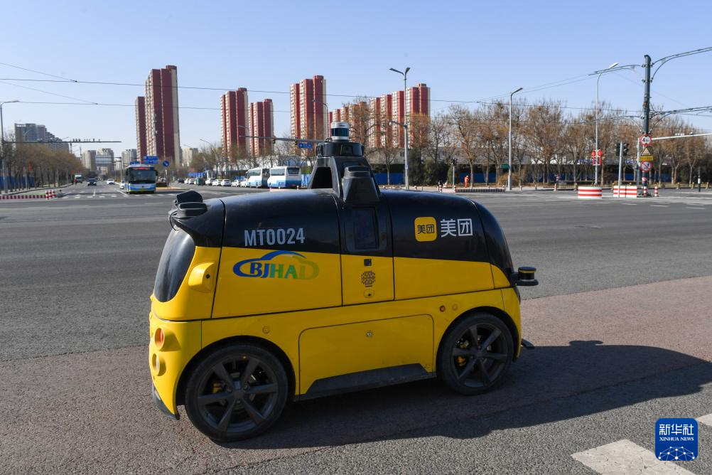 2024年3月1日,在北京经济技术开发区,一辆无人配送车在行进中。