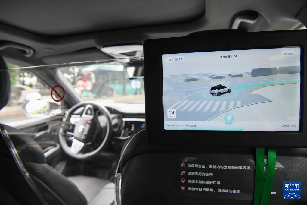 萝卜快跑无人驾驶车辆行驶在深圳市坪山区的道路上(2023年6月15日摄)。2023年6月17日,百度旗下自动驾驶出行服务平台萝卜快跑获得深圳市坪山区授牌,在深圳正式开启L4级无人驾驶商业化试点运营。
