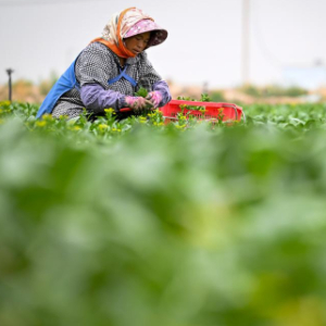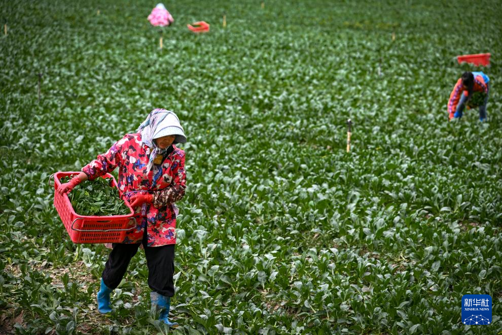 5月以来,宁夏银川市贺兰县冷凉蔬菜迎来采收佳期,工作人员在田间忙碌。据了解,宁夏是农业农村部规划确定的黄土高原夏秋蔬菜生产优势区域和设施农业优势生产区,所产冷凉蔬菜通过冷链物流主要销往粤港澳大湾区市场。贺兰县共有15个冷凉蔬菜生产基地,总播种面积超过10万亩,这里是宁夏菜心的主要产区之一。