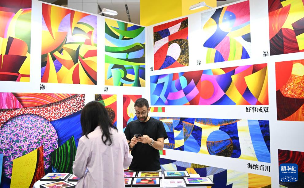 5月24日在第二十届中国(深圳)国际文化产业博览交易会上拍摄的外国展商的汉字艺术作品。