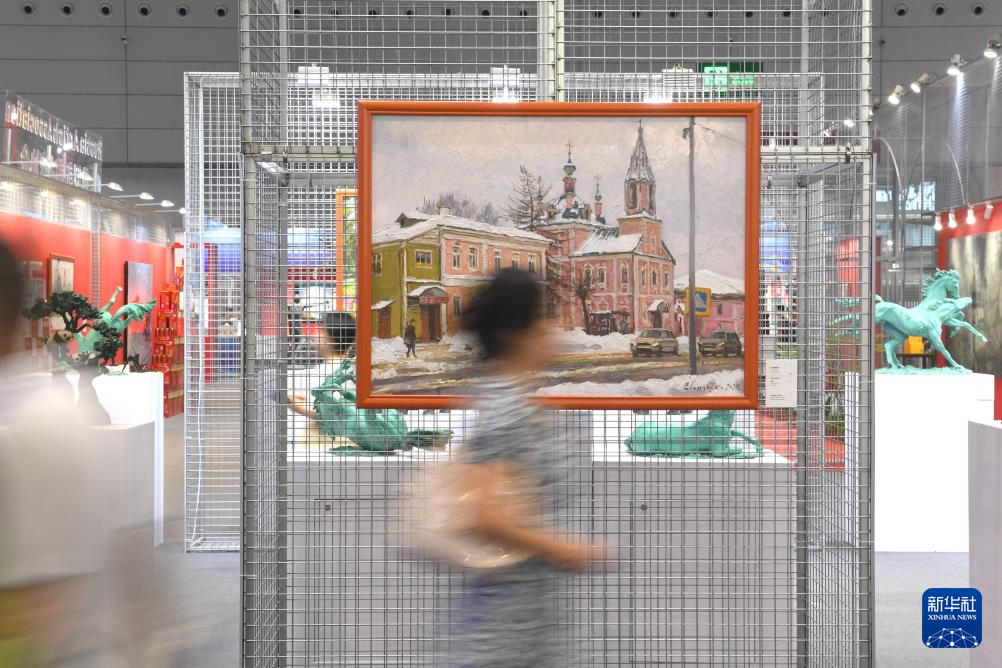 5月24日,在第二十届中国(深圳)国际文化产业博览交易会上,观众从俄罗斯艺术家的画作前走过。