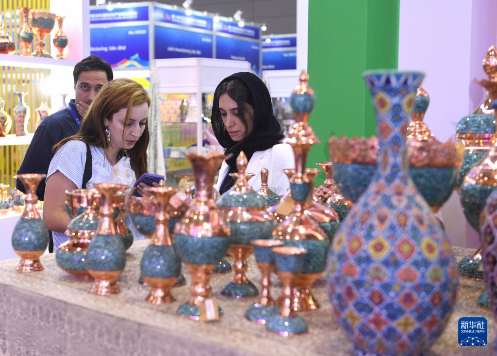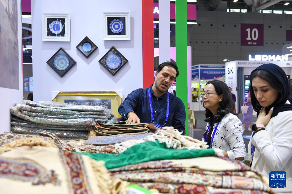 5月24日,观众在第二十届中国(深圳)国际文化产业博览交易会伊朗展台选购毛毯。