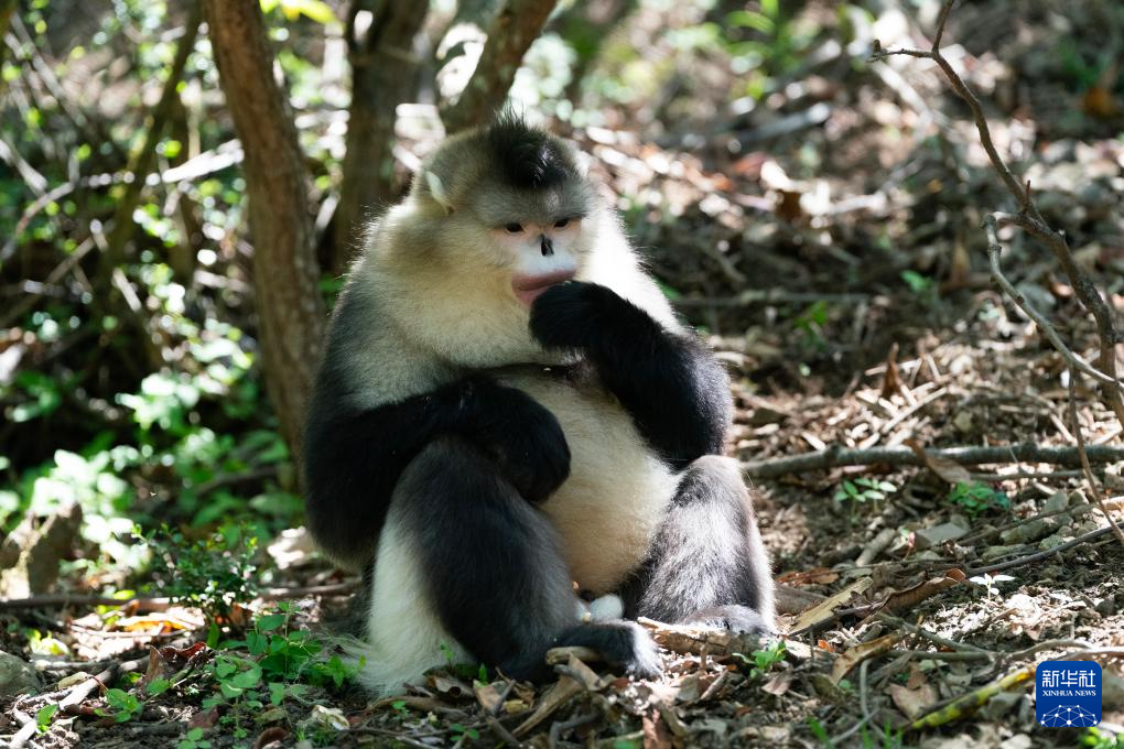 5月23日,在白马雪山国家级自然保护区响古箐片区内,一只滇金丝猴在树下活动。