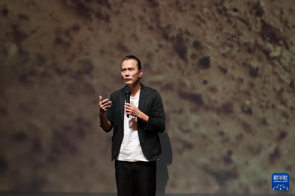 5月23日,云门舞集艺术总监郑宗龙在“春斗2024”彩排记者会现场介绍作品《身土》。
