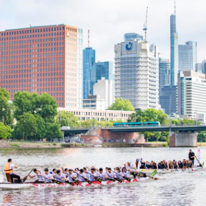 5月25日,在德国法兰克福,龙舟队伍在美因河上参加比赛。
