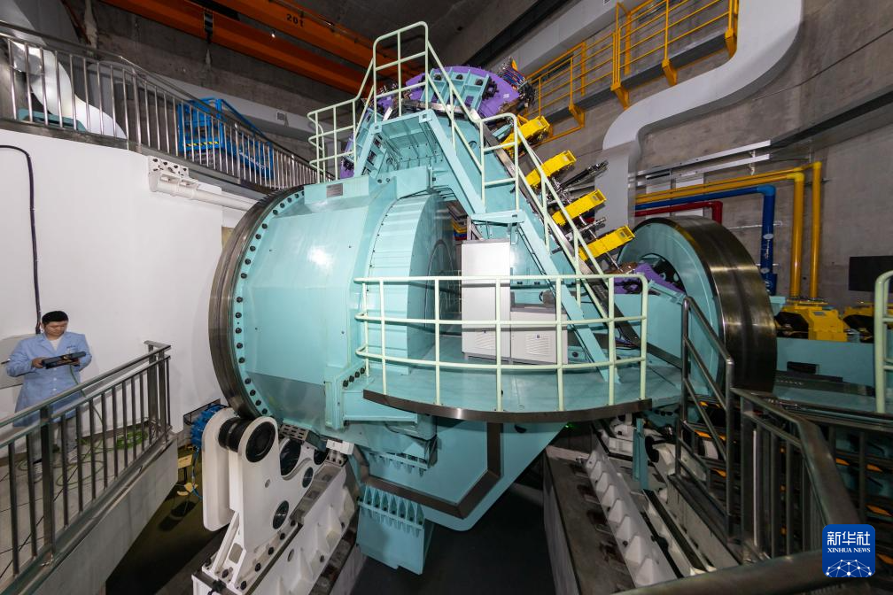 5月24日在位于上海市嘉定区的上海交通大学医学院附属瑞金医院肿瘤质子中心拍摄的一台国产质子治疗设备旋转机架。