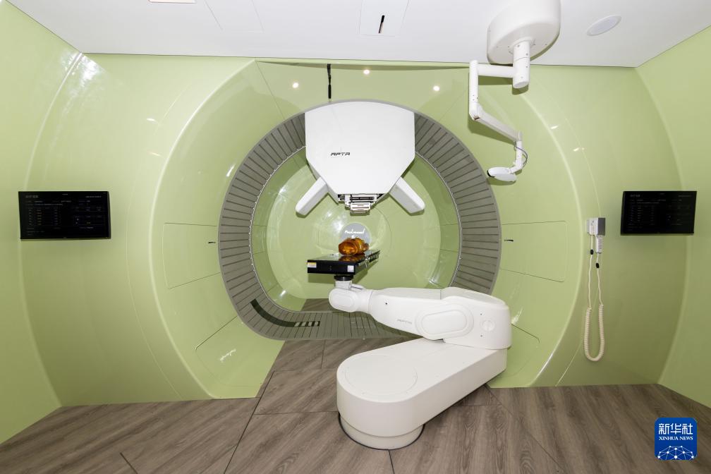 5月24日在位于上海市嘉定区的上海交通大学医学院附属瑞金医院肿瘤质子中心拍摄的360度旋转束治疗室。