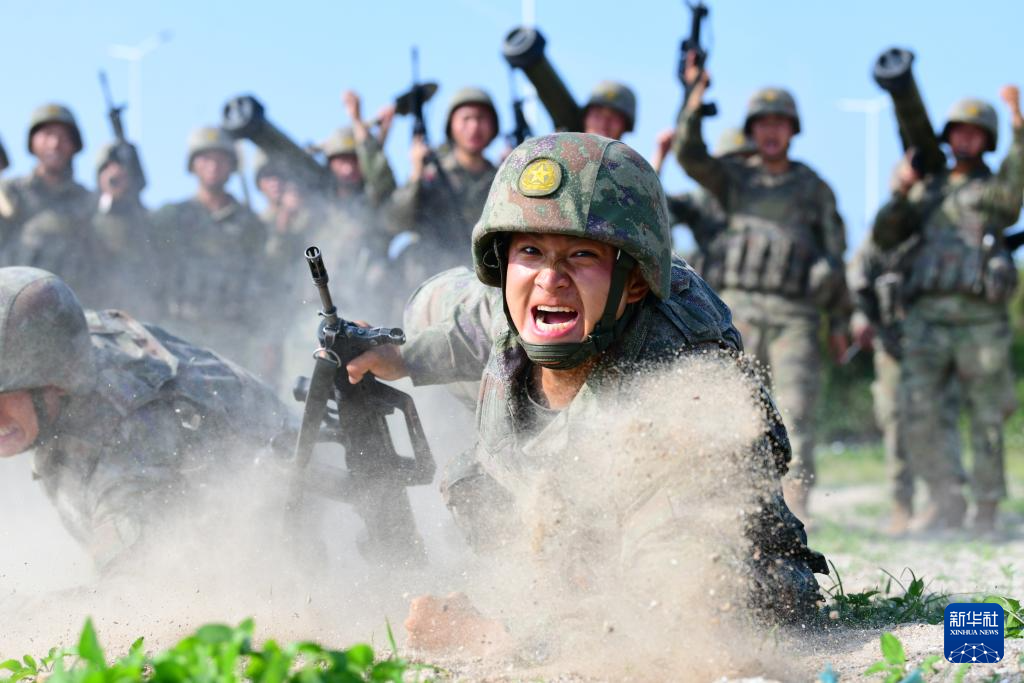 陆军某合成旅“杨根思连”官兵利用训练间隙开展小比武、小竞赛活动(2023年5月26日摄)。