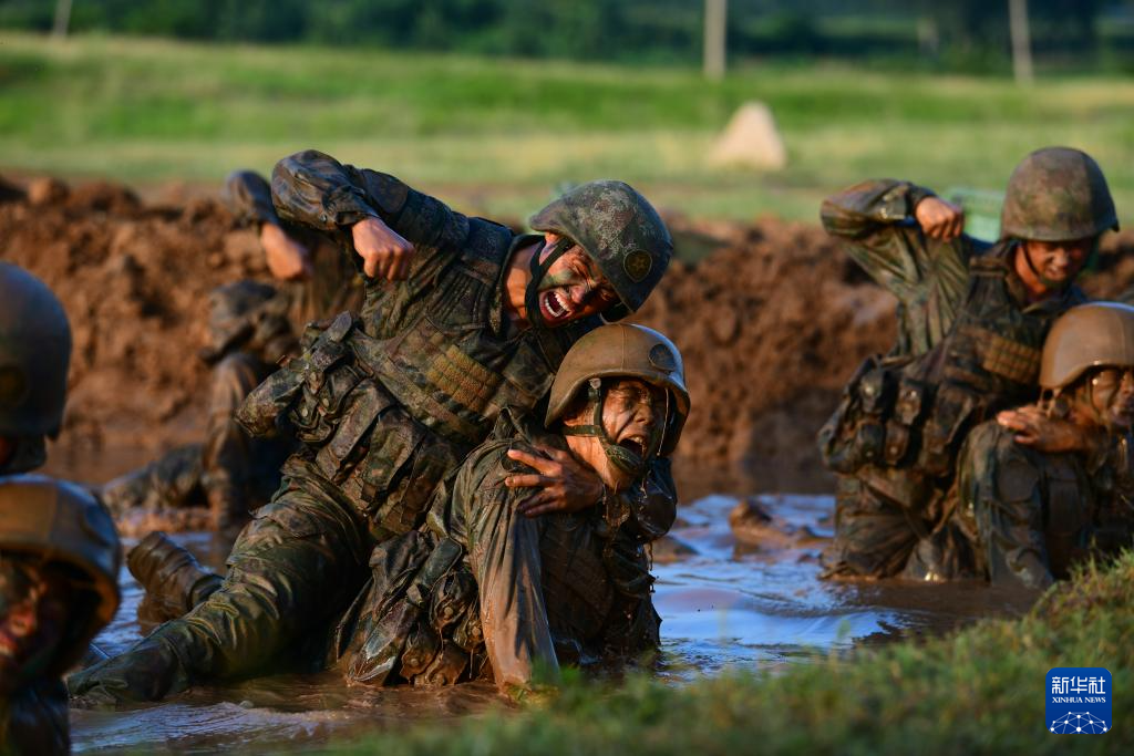 陆军某合成旅“杨根思连”官兵组织格斗训练(2023年7月31日摄)。