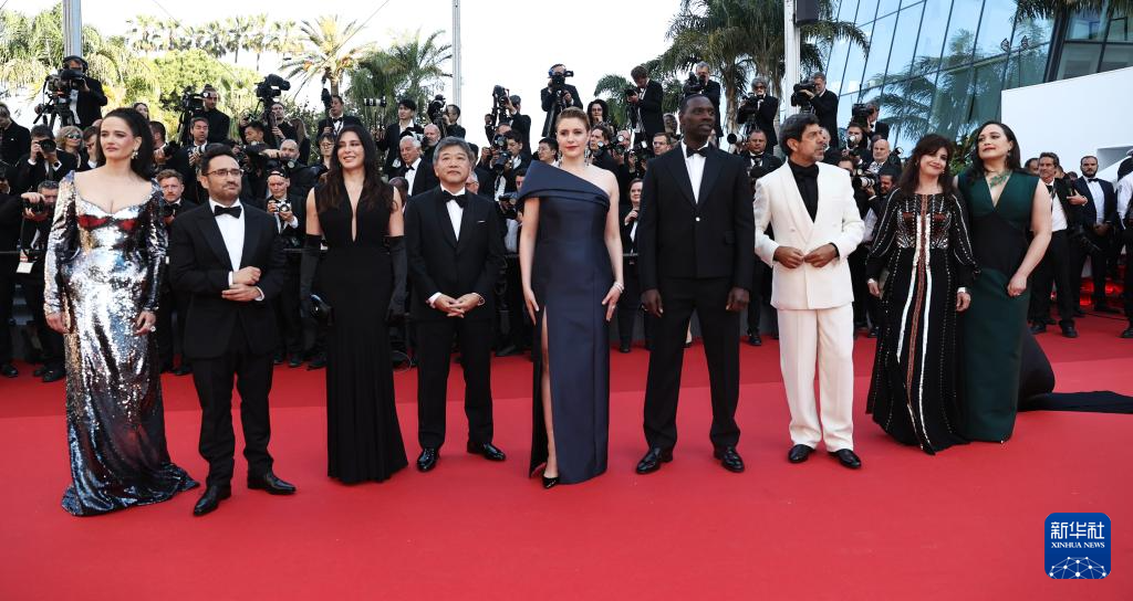 5月25日,在法国南部城市戛纳举行的第77届戛纳电影节上,主竞赛单元评委抵达闭幕式红毯。