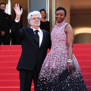 5月25日,在法国南部城市戛纳举行的第77届戛纳电影节上,美国导演、编剧、制片人乔治·卢卡斯(右)抵达闭幕式红毯。