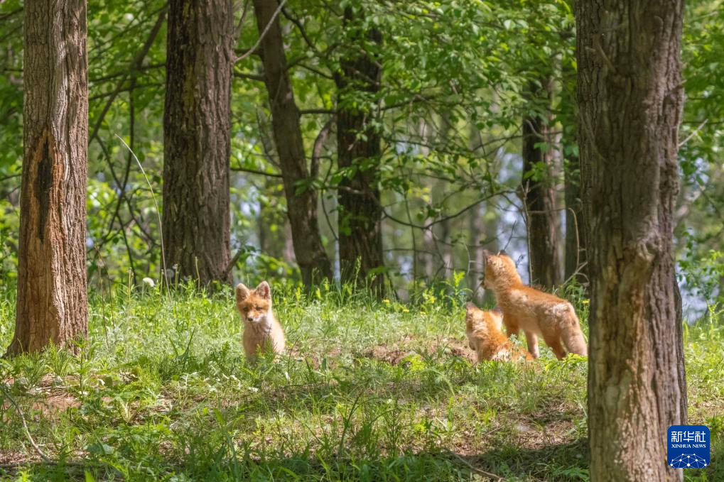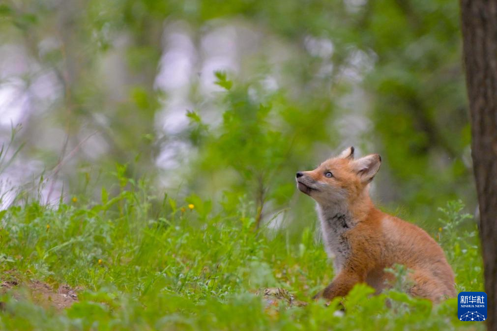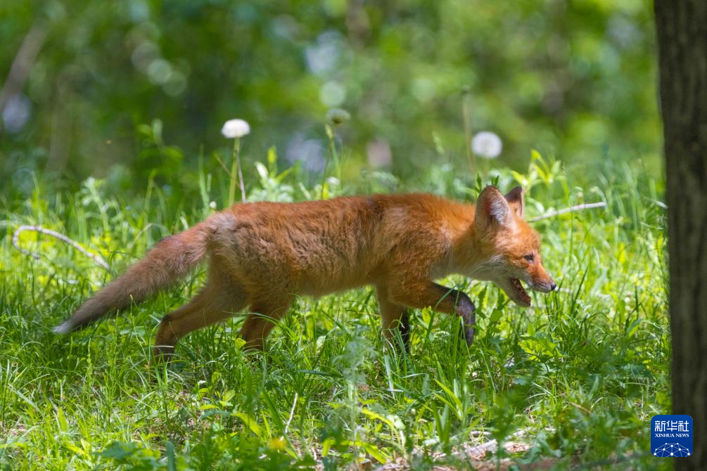 5月25日,赤狐在黑龙江省齐齐哈尔市富裕县一处树林中出没。