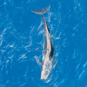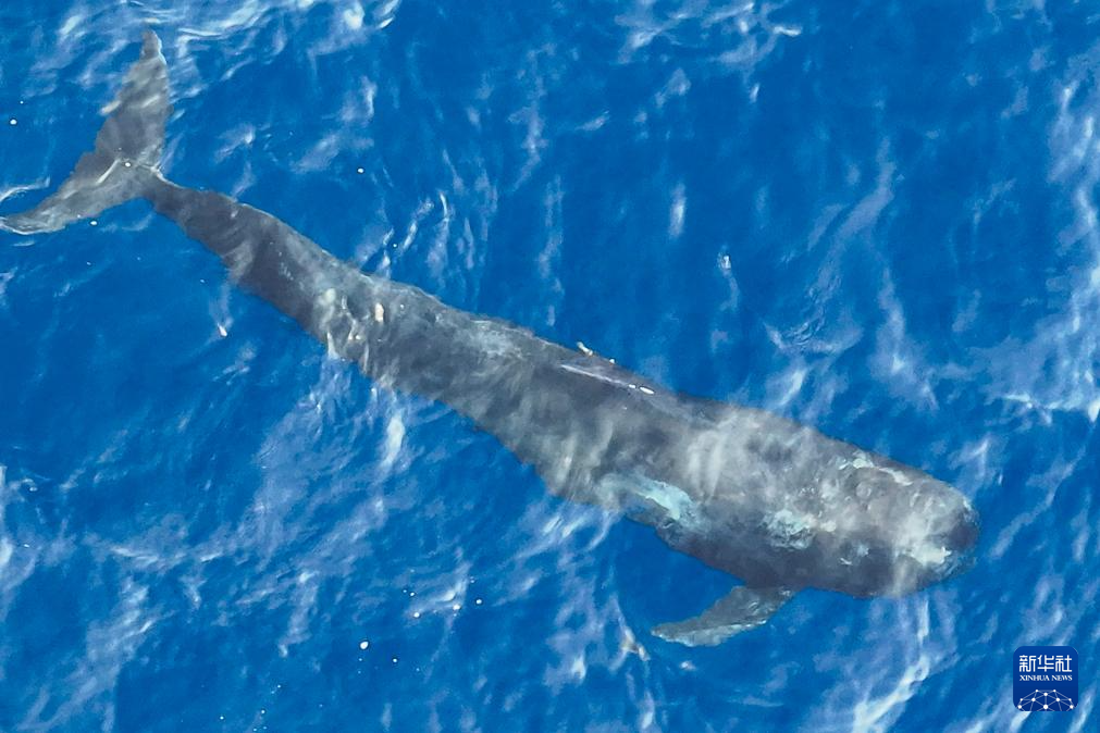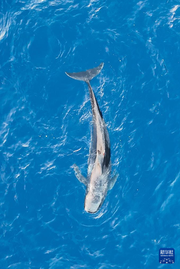 5月26日,短肢领航鲸“海棠”在大海里游动(无人机照片)。