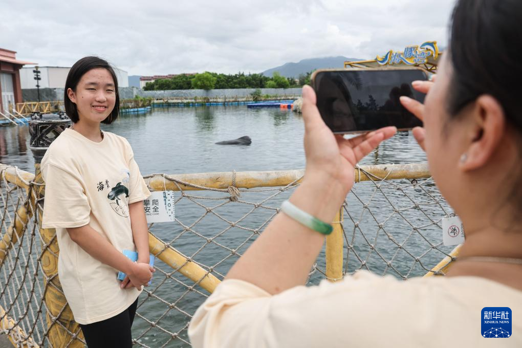 5月25日,中学生志愿者从广州来到三亚送别短肢领航鲸“海棠”。