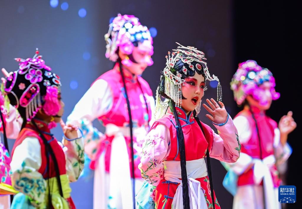 当日,内蒙古自治区鄂尔多斯市康巴什区举行“戏曲舞蹈 炫彩童年”主题展演活动,来自当地小学、幼儿园和少年宫的小演员先后表演了《梨园梦》《戏翎》《买水》等10余个戏曲舞蹈和京剧选段,用优美的舞姿和快乐的心情,与教师、家长共同迎接“六一”国际儿童节的到来。近年来,康巴什区在落实“双减”政策过程中,通过开设戏曲校本课程,设立戏曲社团,开展名家示范、专业辅导等方式,持续推进传统戏曲进校园,为孩子感受戏曲文化,传承戏曲艺术创造条件。