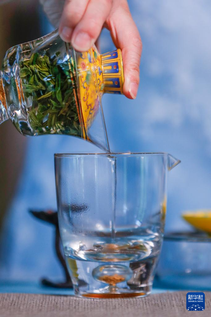 5月23日,在黄山市屯溪区德茗舍茶艺职业培训学校,调饮师汪荪制作茶汤。