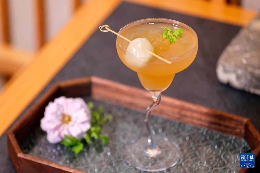 这是5月23日在黄山市屯溪区德茗舍茶艺职业培训学校拍摄的新中式调饮——啖红尘。 新华社记者 杜宇 摄pagebreak