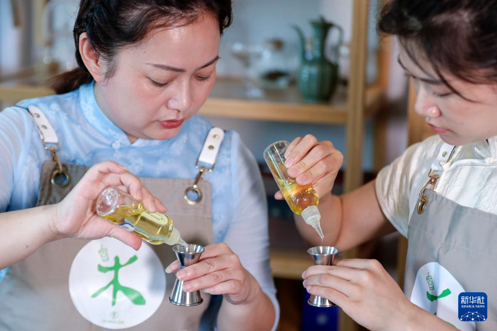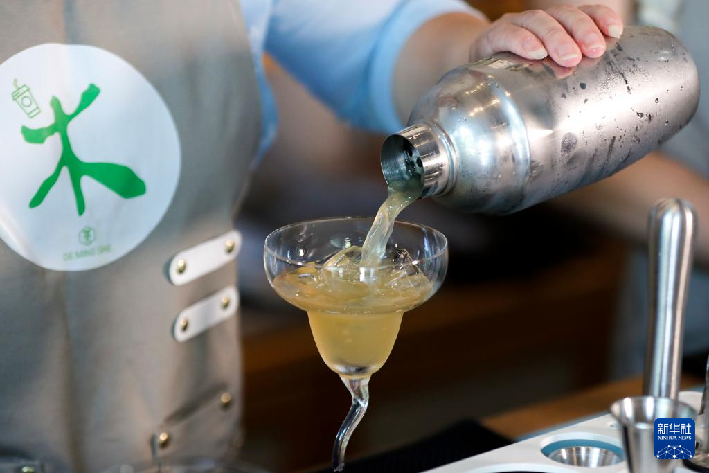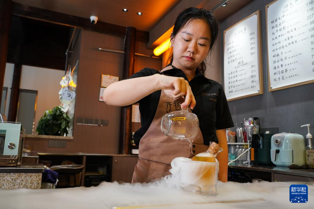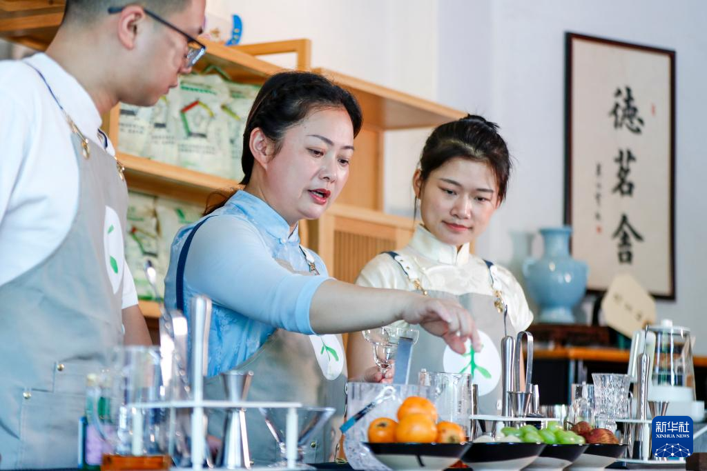 5月23日,在黄山市屯溪区德茗舍茶艺职业培训学校,顾客体验新中式调饮。 新华社记者 杜宇 摄pagebreak