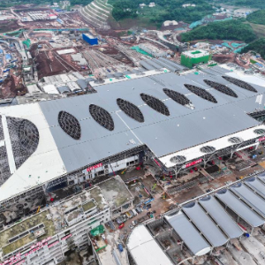 当日,西部地区最大高铁枢纽站——重庆东站钢结构屋顶正式完工,标志着重庆东站站房全面进入装饰装修施工阶段。