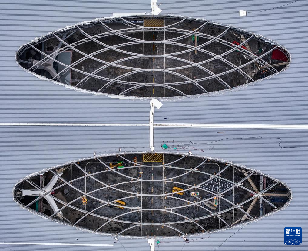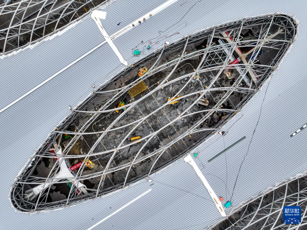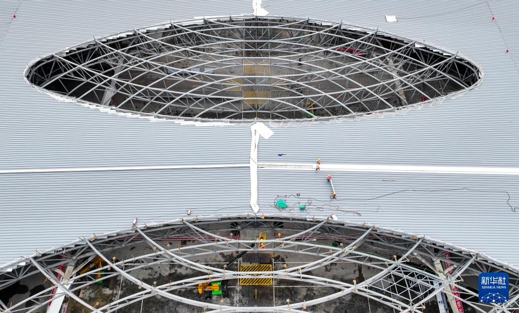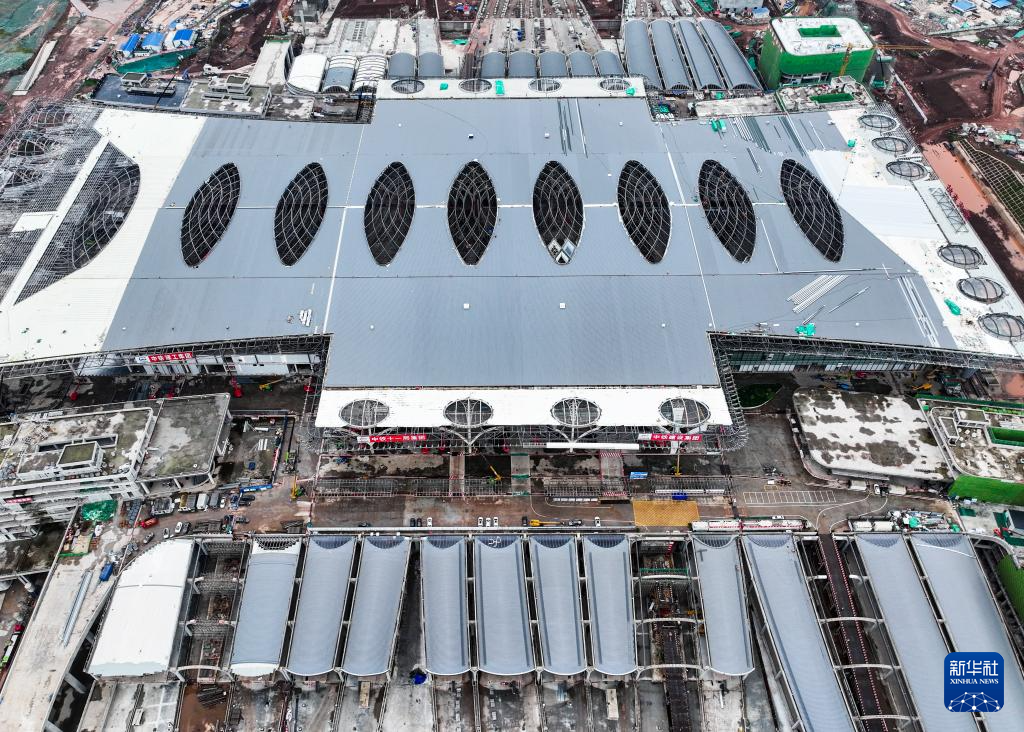 这是5月28日拍摄的重庆东站站房施工作业现场(无人机照片)。