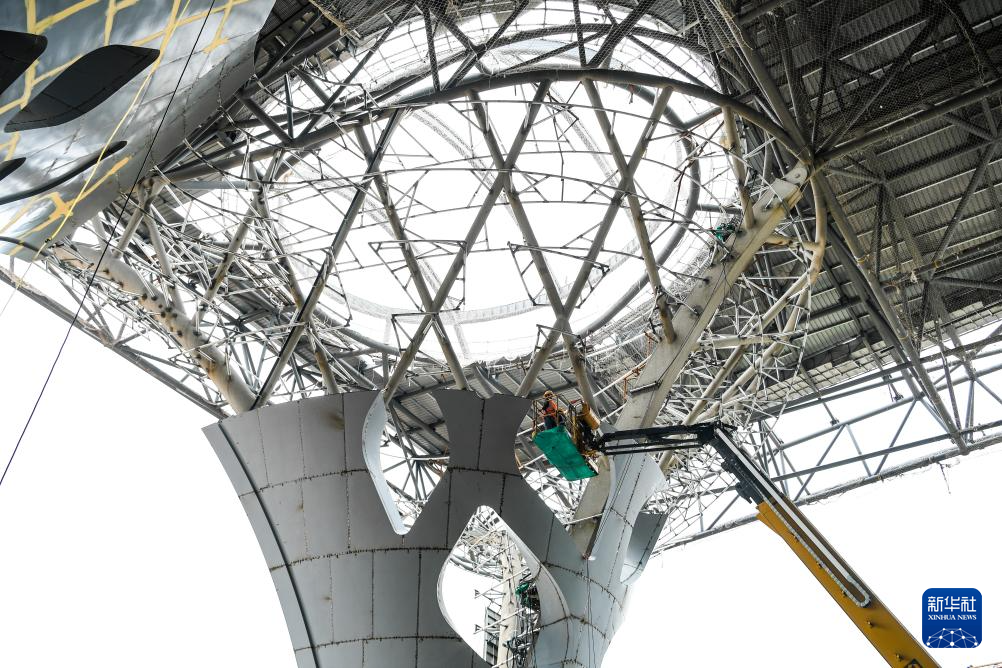 5月28日,中铁建设工人在重庆东站站房及配套综合交通枢纽工程二标段项目作业。