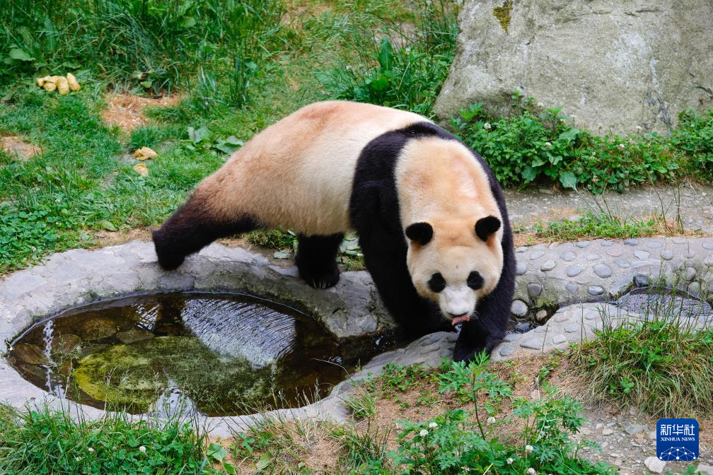 5月27日,大熊猫“福宝”在中国大熊猫保护研究中心卧龙神树坪基地的繁育园里活动。
