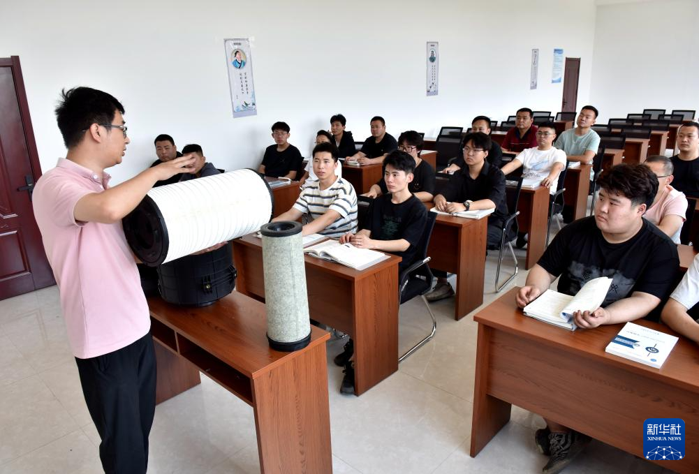 5月28日,在威县威力职业技能培训学校,教师为学员讲解汽车配件知识。