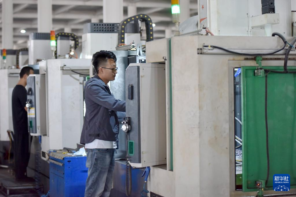 5月28日,在威县劳务品牌建设单位邢台威力汽车零部件有限公司,学员操作数控机床。