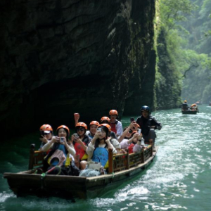 入夏以来,地处鄂西山区的湖北省鹤峰县屏山等旅游景区进入旅游旺季,来自国内外的游客到此休闲度假,乘船穿行水上,欣赏峡谷美景。近年来,当地推出休闲康养游、生态研学游等旅游服务产品,促进县域旅游产业快速发展。