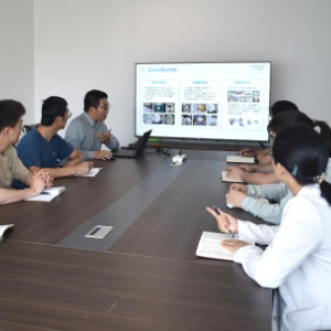 在北京三合智能科技有限公司,谷鹄翔与同事开会(5月21日摄)。