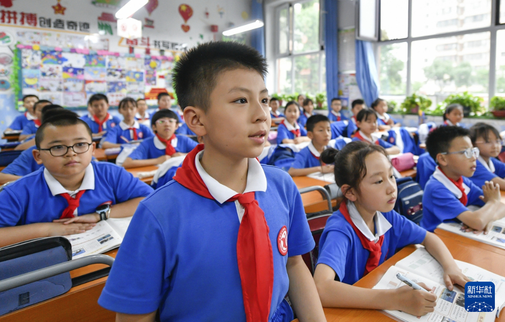 在兰州市七里河区秀川小学,张书铖在课堂上回答老师提问(5月28日摄)。