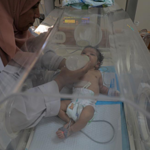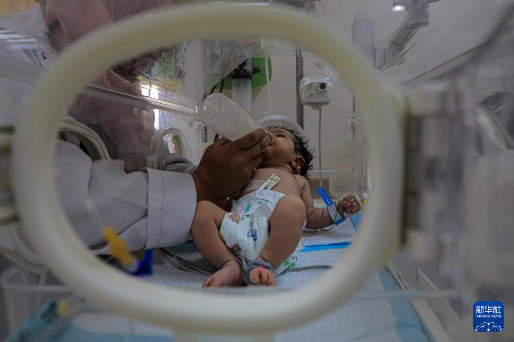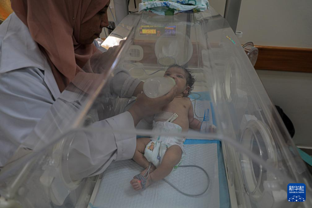 5月29日,在加沙地带中部的阿克萨医院,医务人员照顾从拉法转移到这里的新生儿。