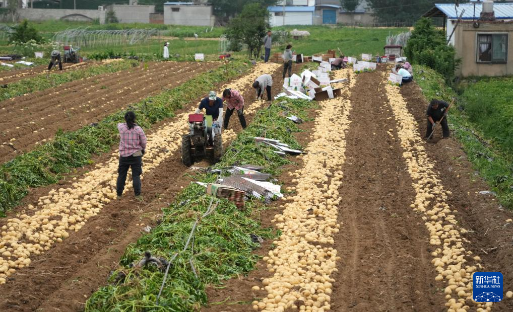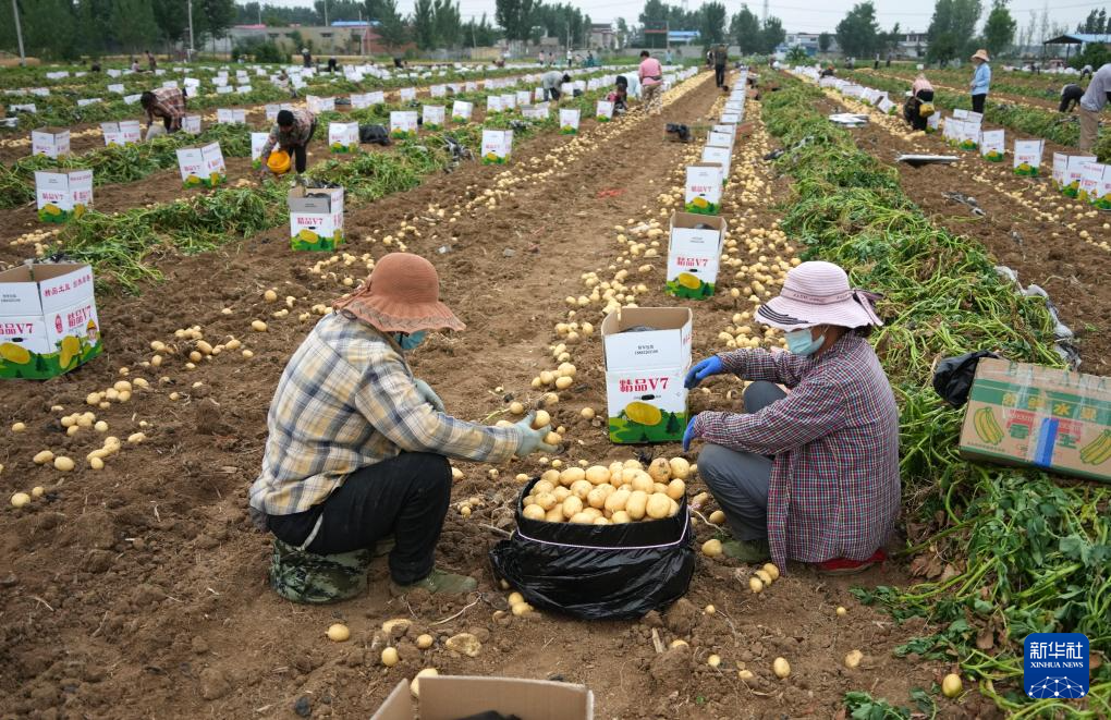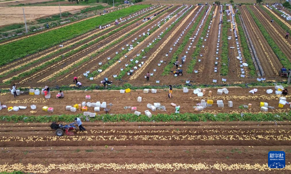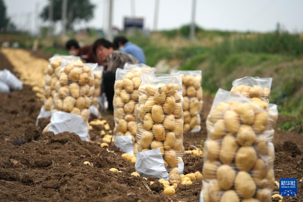 5月29日,在山东省滕州市界河镇,村民在收获马铃薯。
