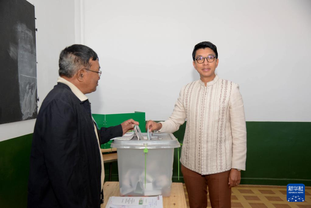 5月29日,马达加斯加总统拉乔利纳(右)在塔那那利佛的一处投票站投票。