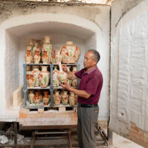 界首彩陶烧制技艺源于唐代,彩陶烧制曾集中于安徽省阜阳市界首市田营镇。为了传承和发展界首彩陶烧制技艺,当地非遗传承人不断创新彩陶的器型、刻画纹样以满足现代社会需要,他们设计的饰品、文具等彩陶文创产品受到消费者的喜爱。此外,田营镇不仅保留了彩陶烧制工坊,还设立了非遗传承与发展基地、彩陶博物馆等场所,吸引学生前来研学。