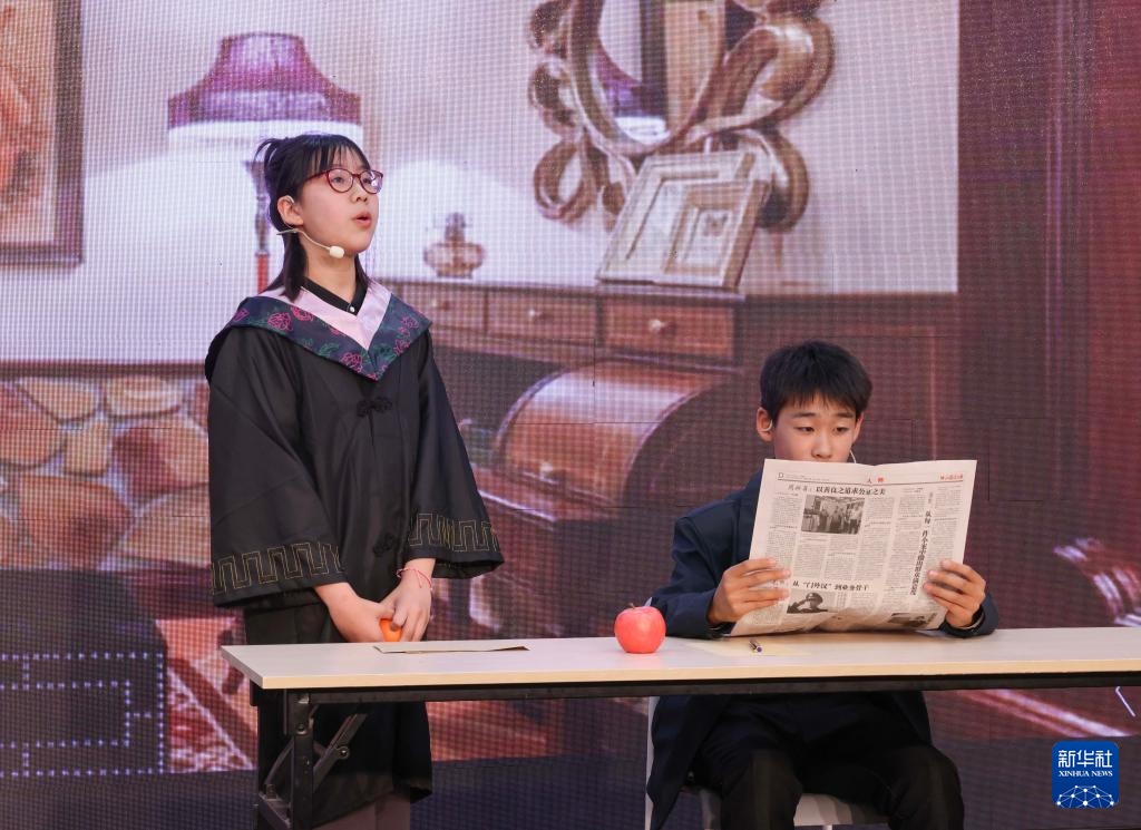 近日,中国人民大学附属中学分校开展戏剧课程学习成果汇演活动,全校小、初、高各学段学生以小品短剧、多幕话剧等形式展现戏剧课程学习成果。