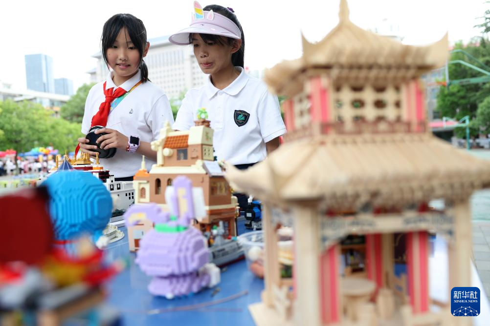 5月31日,位于武汉市洪山区的华中师范大学幼儿园组织亲子游园会、爱心义卖、画展等活动。这是小朋友们在活动现场。