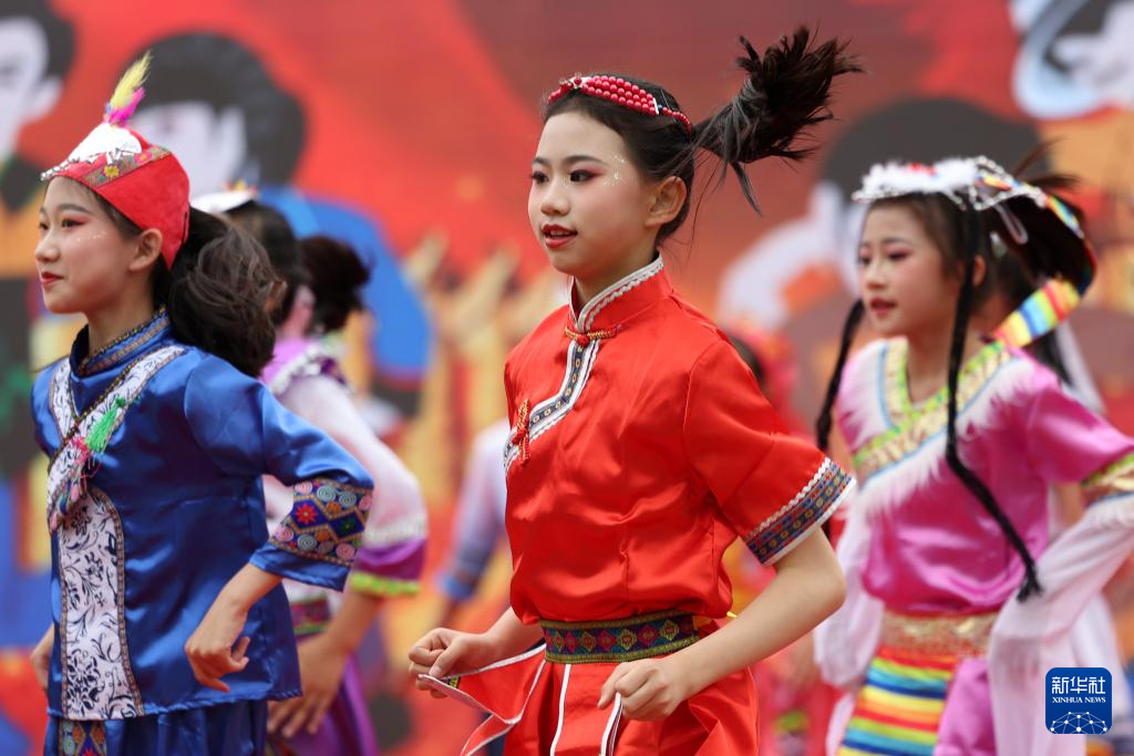 5月30日,云南省曲靖市陆良县文化小学的孩子们在表演节目。