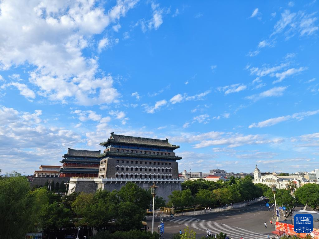 蓝天白云下的北京城市面貌(5月31日摄)。