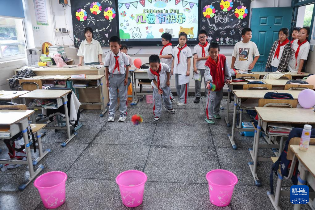 当日,浙江省湖州市吴兴区织里镇多家幼儿园、小学组织开展趣味游戏、主题DIY活动及劳动技能比赛,孩子们欢聚一堂,共同迎接儿童节的到来。